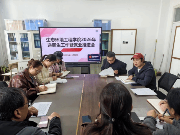 11 月 5 日中午,生态环境工程学院在会议室召开选调生工作会议暨就业推进会,学院党委书记魏青、研究生管理办公室主任周武、就业辅导员张晓凤、石汝恒及全体毕业班班主任参加了会议。